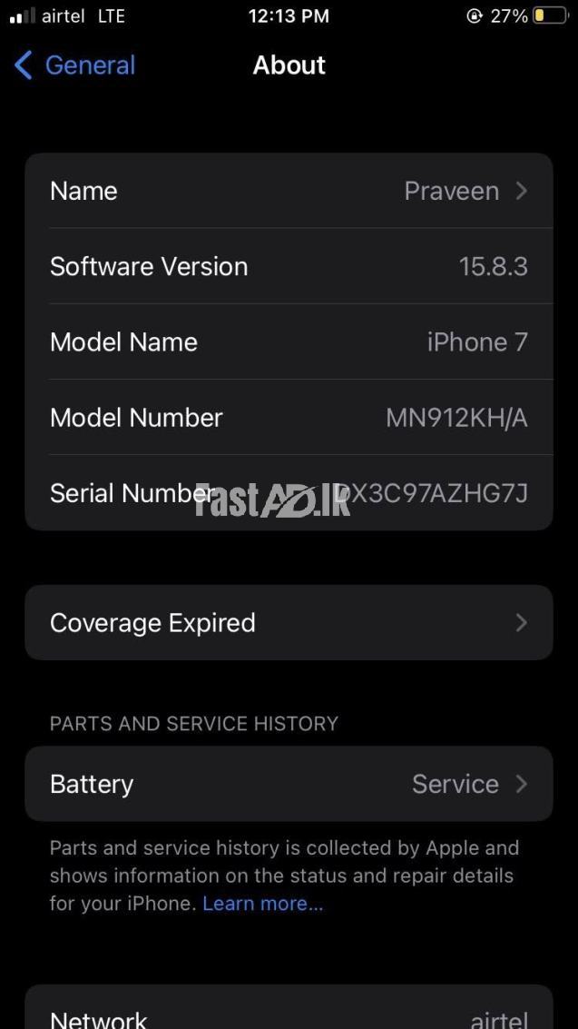 Mobile PhonesCondition: UsedBrand: AppleModel: iPhone 7Edition: all sensors working perfectlyFeatures: Bluetooth, Camera, GPS, Physical keyboard, 4G, Touch screenFor SellColombo, PiliyandalaSave ad as favorite