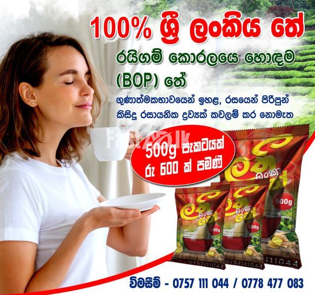 ශ්රී ලංකාවේ රයිගම් කොරලයේ සාරවත් තේ වතු වලින් සෘජුව ලබාගත් උසස් තත්ත්වයේ පිරිසිදු තේ.