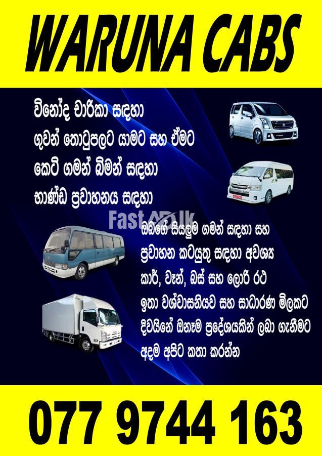 Looking for safe, reliable, and affordable transport across Sri Lanka? *WARUNA CABS* is here for you 24/7 with the perfect vehicle for any occasion!
