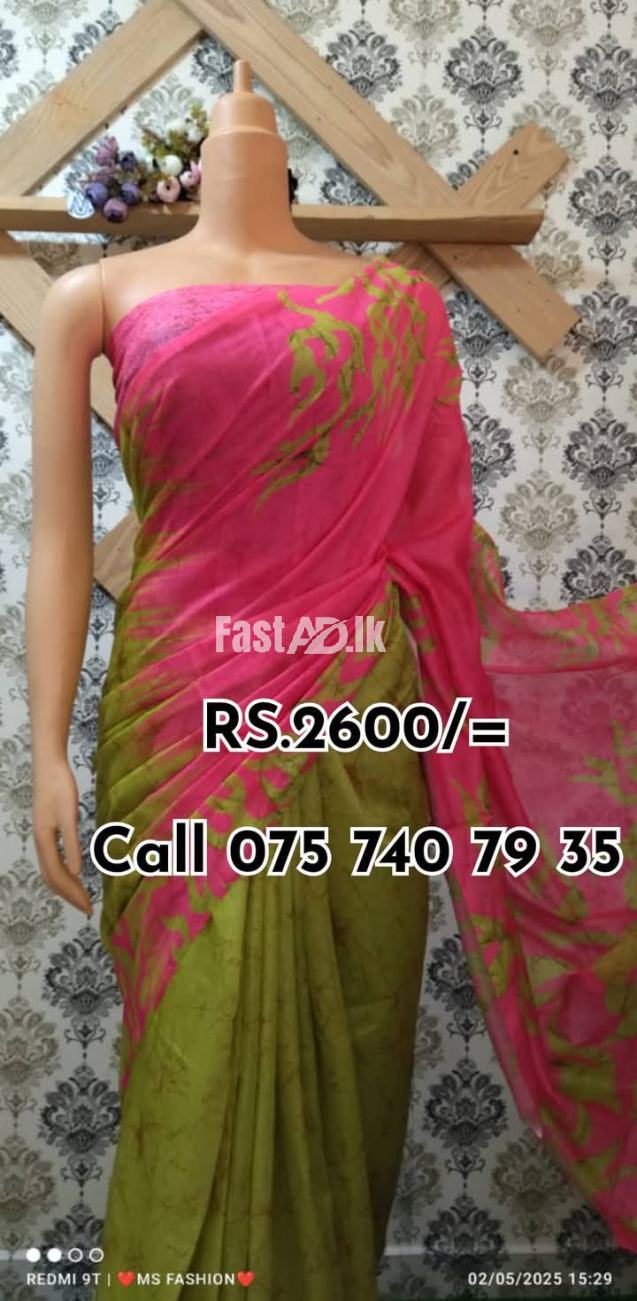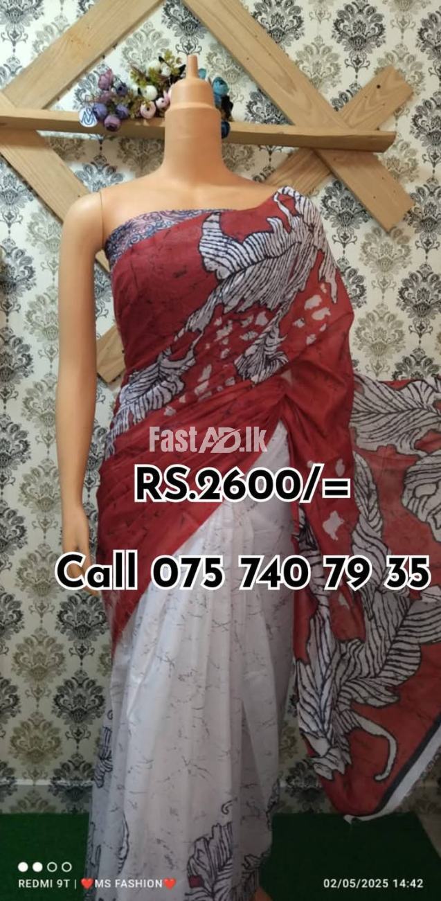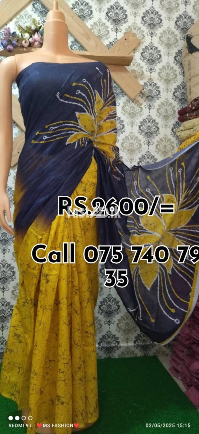 *Cash on delivery available *Bank deposit ° Indian cotton bathik saree. ° No Full cotton ° Quality printed bathik saree.